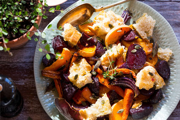 Warm Bread and Veggies Salad