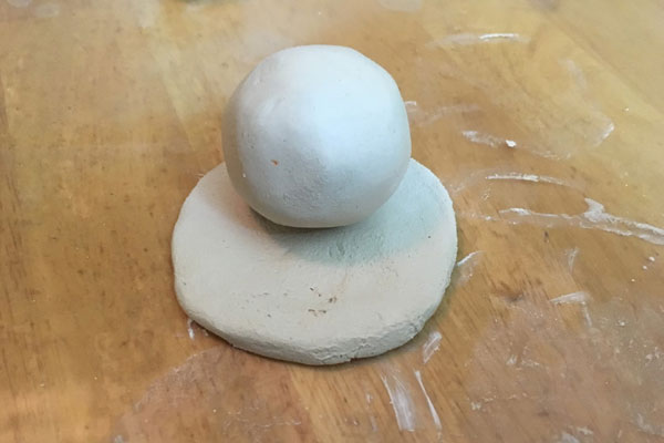 3. Now make a ball-shape body part of the idol and stick it to the base you prepared before using a toothpick to 2-3 drops of water.