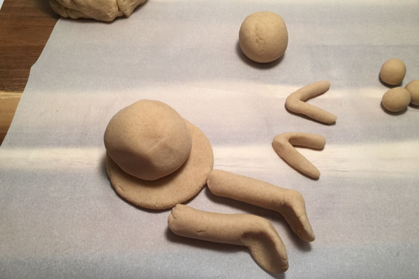 4. Now take four clay parts and make long rolls for legs, arms, and trunk of the idol.