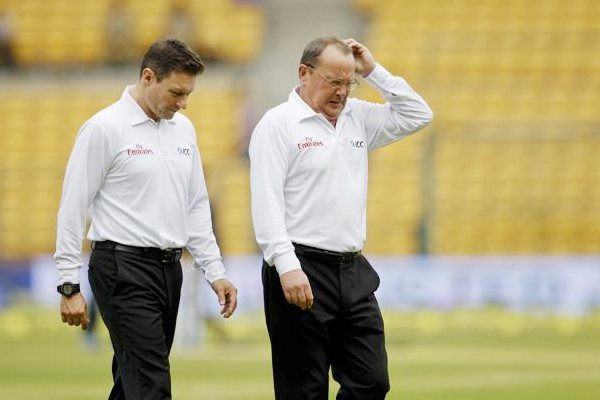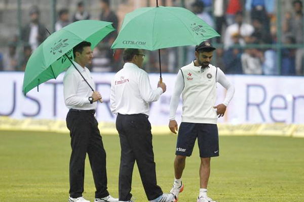 Umpires Ian Gould, Richard Allan Kettleborough, and C.K. Nandan inspected the outfield. After some time, the match was called off due to rain, wet outfield, Wet weather and soggy conditions in Bengaluru. Not even a single ball was bowled for the third successive day in the second Test, before the match was called off.